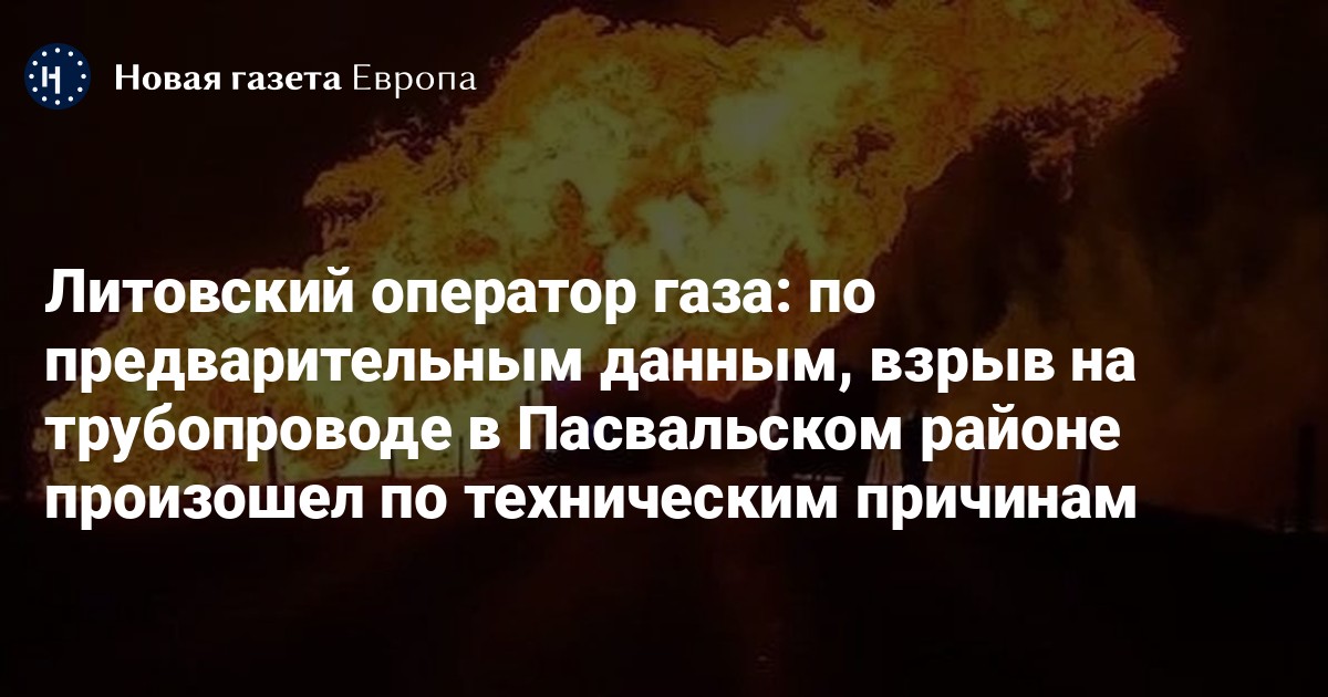 По предварительным данным, причиной взрыва на газопроводе в Пасвальском районе Литвы стала техническая неисправность. Об этом сообщил Нямунас Бикнюс, глава литовского газового оператора Amber Grid.