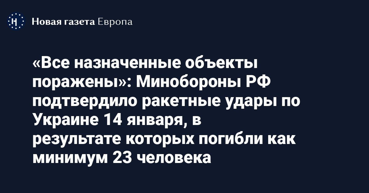 «Все назначенные объекты поражены»: Минобороны РФ подтвердило ракетные удары по Украине 14 января, в результате которых погибли как минимум 23 человека