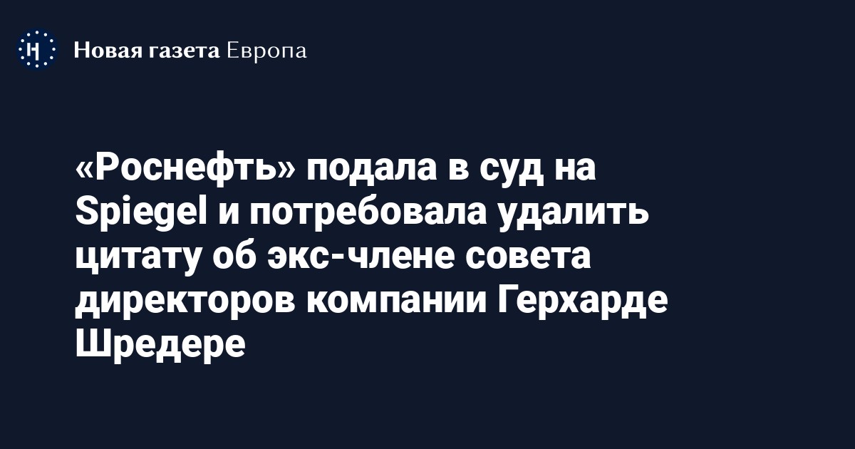 Компания «Роснефть» подала в Арбитражный суд Москвы иск о защите деловой репутации к немецкому изданию «Der Spiegel». Об этом сообщает