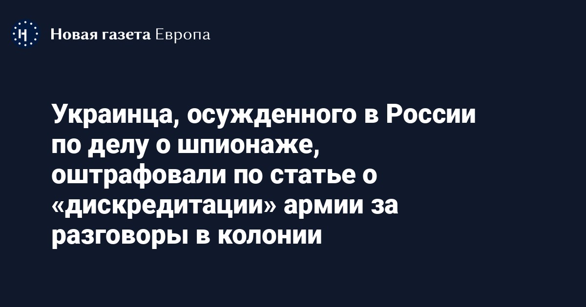 Украинца, осужденного в России по делу о шпионаже, оштрафовали по статье о «дискредитации» армии за разговоры в колонии