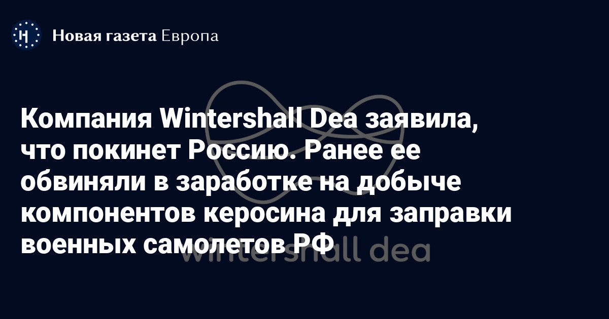 В пресс-релизе также говорится, что в связи с этим объявлением Wintershall Dea перестанет публиковать отчетность предприятий, которыми владеет совместно с Россией. При этом сроки выхода из России в публикации не обозначены.