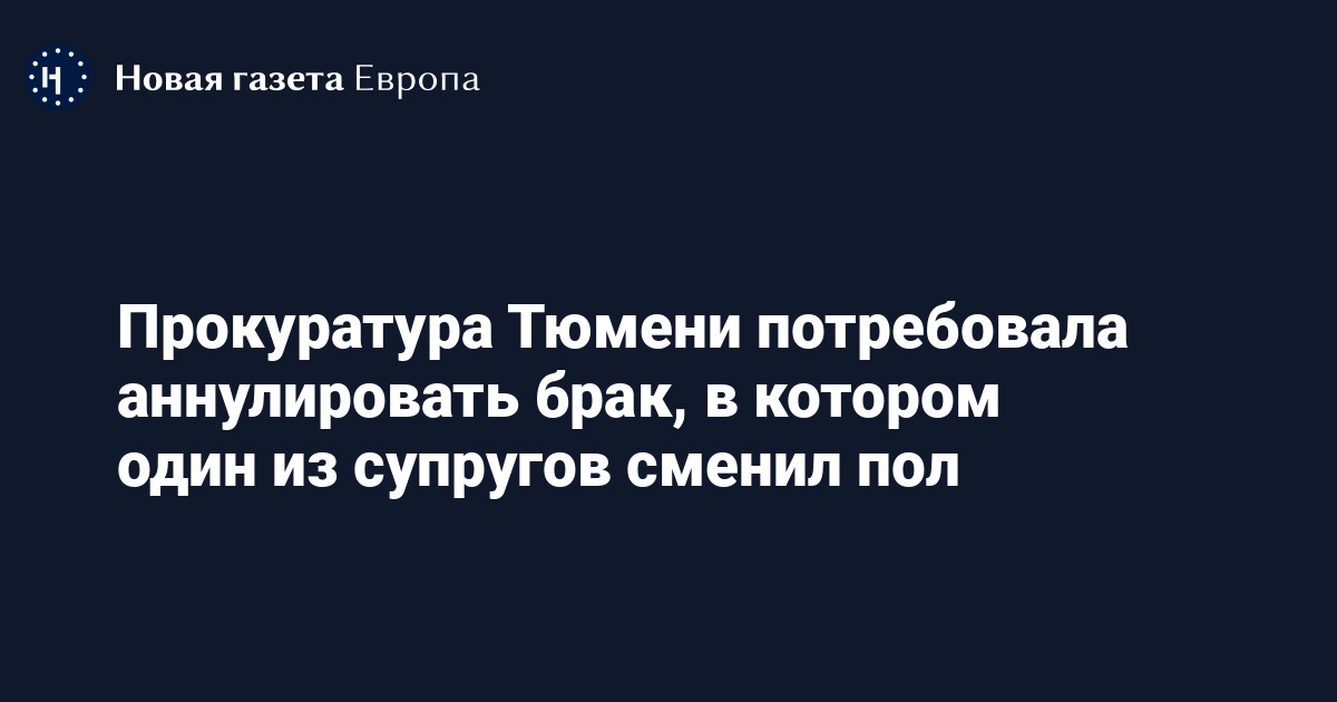 «Принимая во внимание, что, согласно Семейному кодексу РФ, регулирование семейных отношений осуществляется в соответствии с принципами добровольности союза мужчины и женщины, прокурор г.Тюмени обратился в суд с вышеуказанным заявлением», — говорится в сообщении суда.