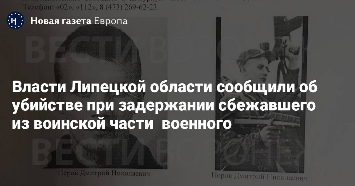 Сбежавшего из воинской части с оружием военного Дмитрия Перова убили. Об этом сообщила пресс-служба правительства Липецкой области.