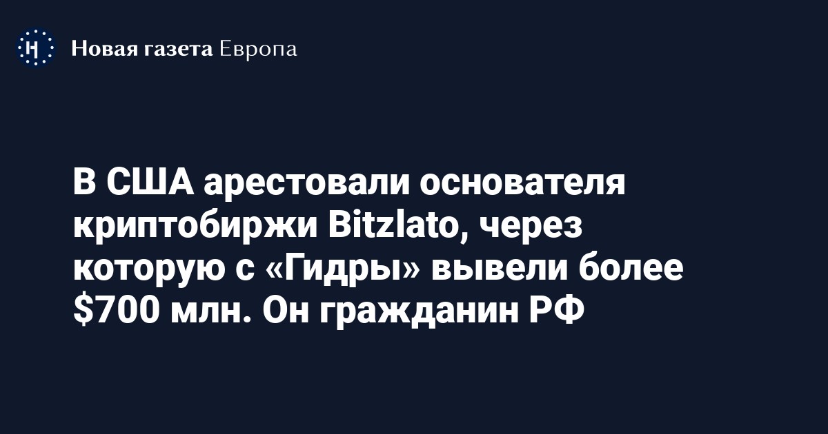 Вечером 17 января в Майами арестовали 40-летнего гражданина РФ Анатолия Легкодымова — основателя криптобиржи Bitzlato, зарегистрированной в Гонконге. Его обвиняют в отмывании денежных средств. Об этом сообщает Минюст США.