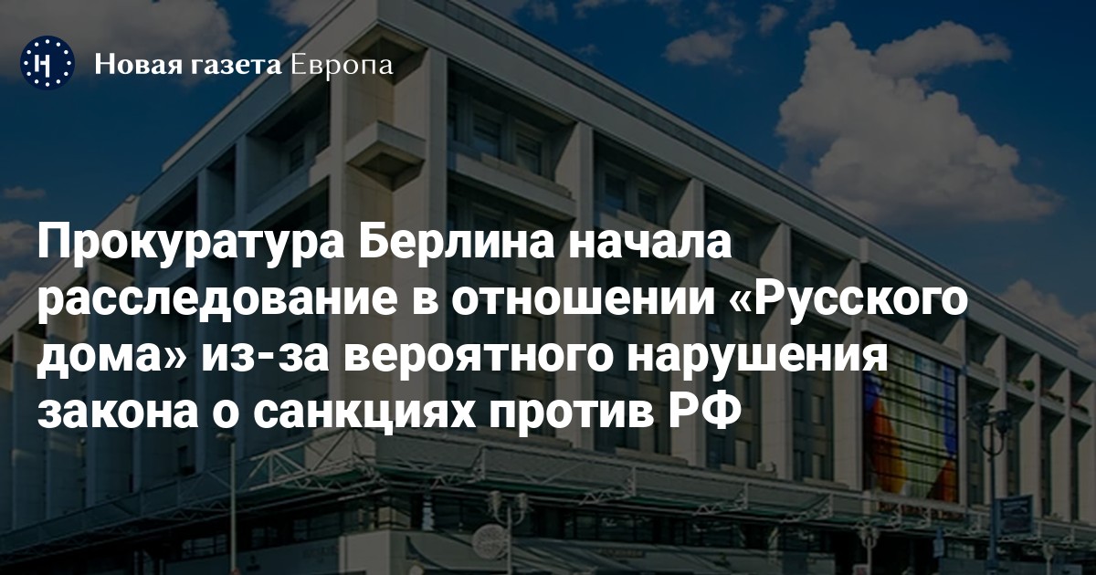Прокуратура Берлина начала расследование в отношении «Русского дома» в столице ФРГ из-за вероятного нарушения закона о санкциях Евросоюза, введенных против России из-за войны в Украине. Об этом сообщает газета Berliner Zeitung со ссылкой на представителя берлинских правоохранительных органов.