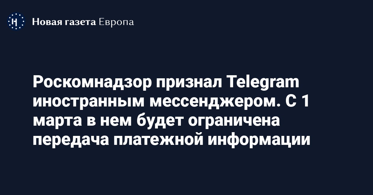 Роскомнадзор признал Telegram иностранным мессенджером. С 1 марта в нем будет ограничена передача платежной информации