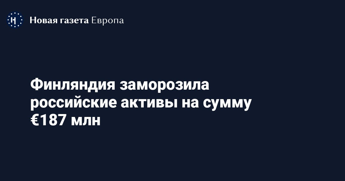В МИД Финляндии сообщили о заморозке российских активов на сумму €187 млн в рамках санкций против России, введенных из-за войны в Украине. Об этом сообщает Yle.