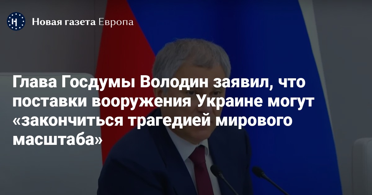 Председатель Госдумы РФ Вячеслав Володин заявил, что поставки наступательного вооружения Украине «приведут к глобальной катастрофе».