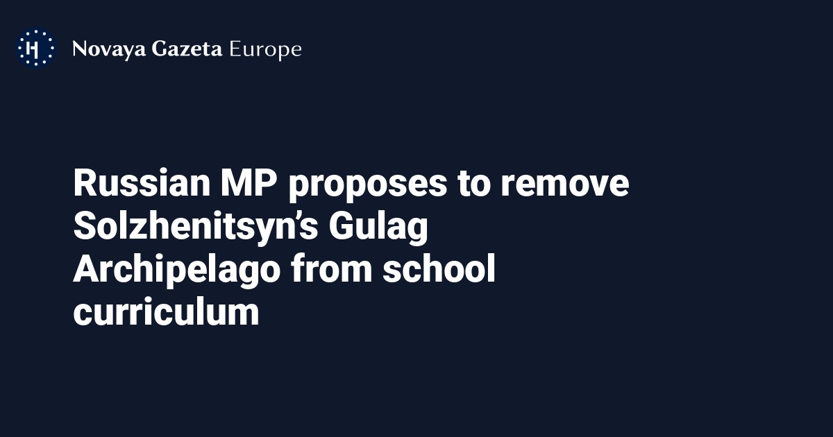Olga Kazakova, the head of the State Duma Committee on Enlightenment, says removing The Gulag Archipelago from the school curriculum “is out of the question, as it has always been”.