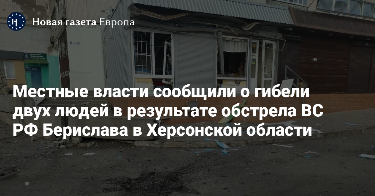 Два человека погибли, трое получили ранения в результате обстрела города Берислав в Херсонской области российской армией. Об этом сообщает администрация региона.