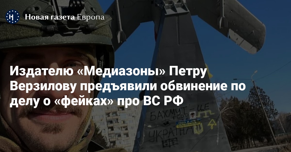 Издателю «Медиазоны» Петру Верзилову предъявили обвинение по делу о распространении «фейков» про российскую армию по мотивам политической ненависти (п. «д» ч.2 ст. 207.3 УК), сообщает издание.