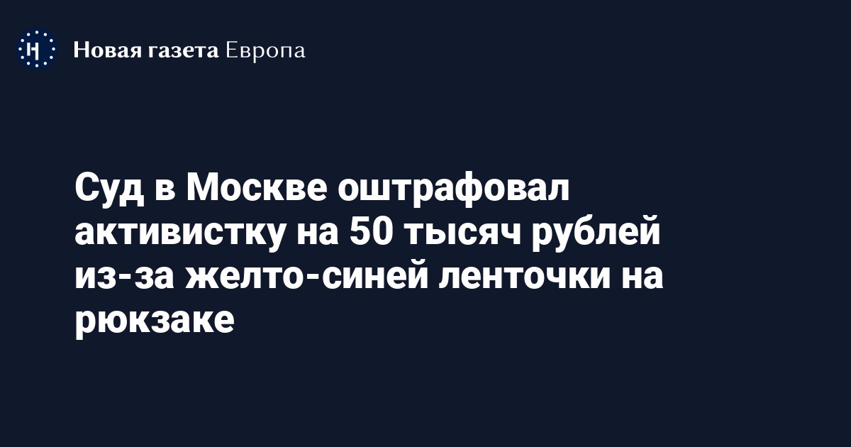 Тверской районный суд Москвы оштрафовал трансгендерную девушку и ЛГБТ-активистку из Казани Сашу Косареву на 50 тысяч рублей из-за желто-синей ленточки на лямке рюкзака. Об этом она рассказала «Медиазоне», карточка дела опубликована на сайте суда.