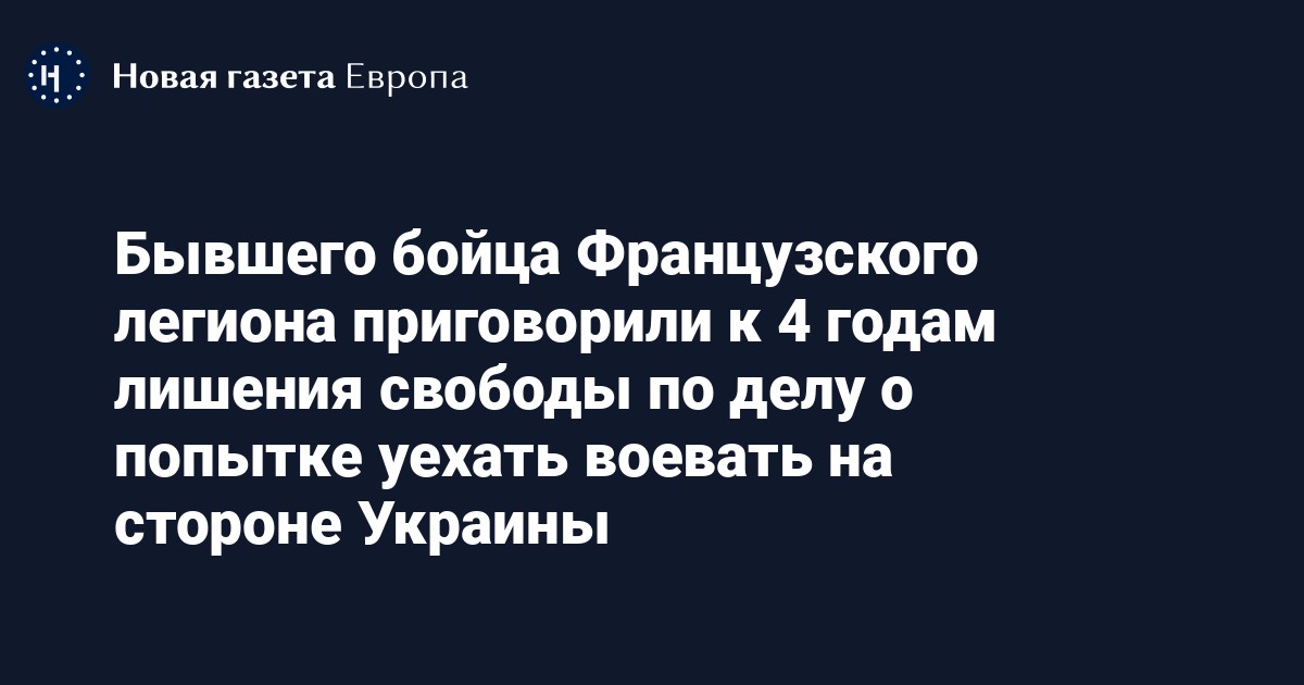 Лефортовский районный суд Москвы приговорил бывшего военнослужащего Французского иностранного легиона Максима Дмитриенко к четырем годам лишения свободы по делу о попытке уехать воевать на стороне Украины. Об этом сообщает ТАСС.