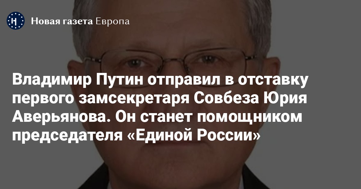 «Освободить Аверьянова Юрия Тимофеевича от должности первого заместителя секретаря Совета безопасности РФ», — говорится в указе.