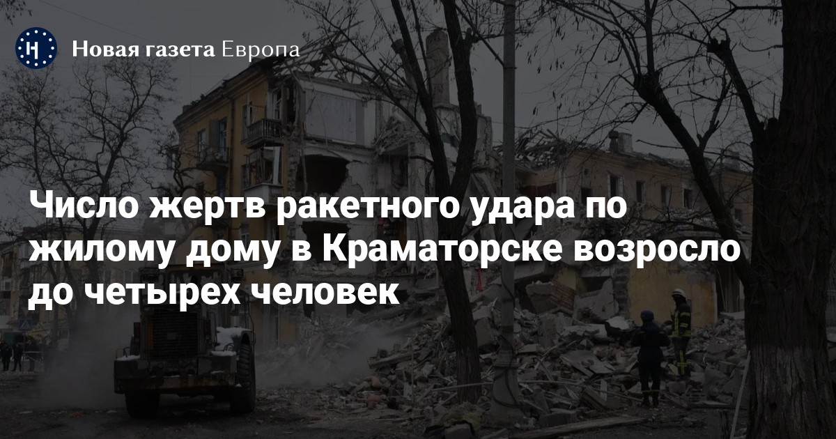 Число жертв ракетного удара российских войск по жилому дому в Краматорске в Донецкой области Украины возросло до четырех человек, сообщил мэр города Александр Гончаренко в фейсбуке.