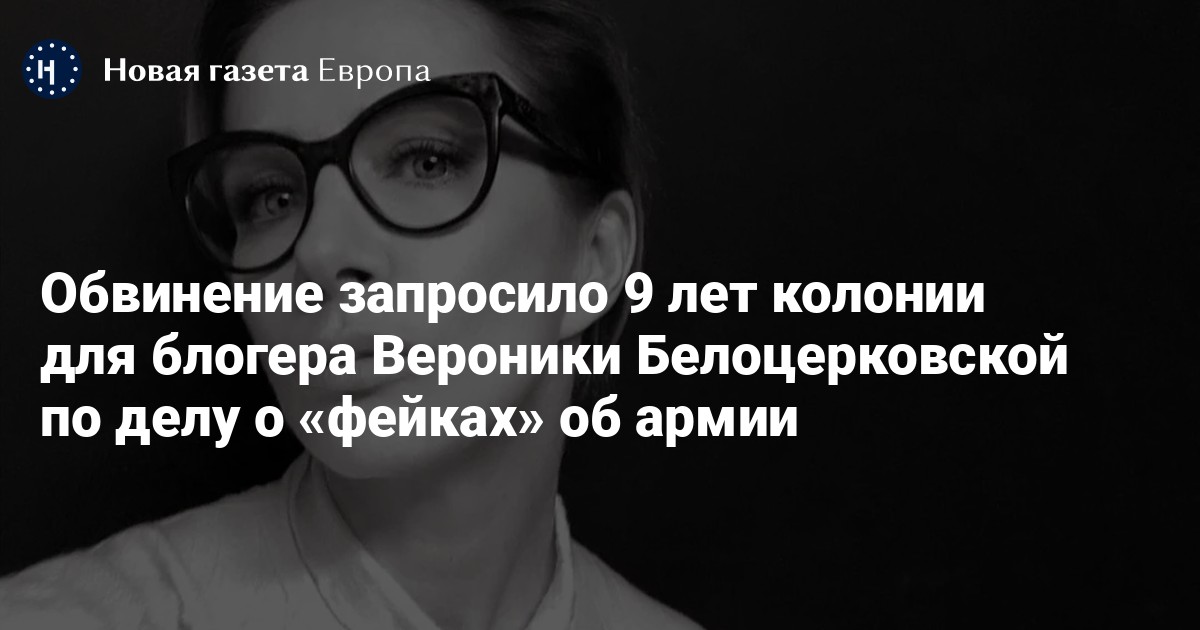 Прокурор запросил назначить блогеру и основательнице петербургского журнала «Собака.ru» Веронике Белоцерковской девять лет колонии по делу о «фейках» об армии. Об этом сообщает корреспондент ТАСС из зала суда.