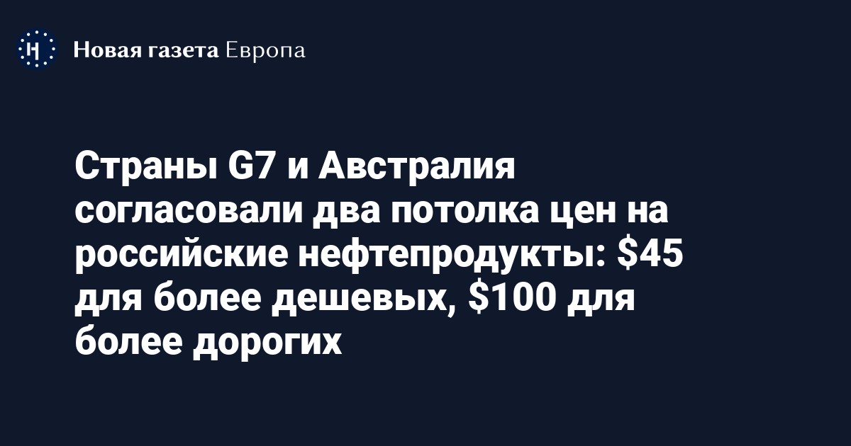 Всего будет установлено два потолка: один для нефтепродуктов, торгующихся по более высокой цене, чем сырая нефть, таких как дизельное топливо или бензин, а другой — для нефтепродуктов, которые торгуются со скидкой по отношению к сырой нефти, таким как мазут. Уровень цен для первой категории продуктов составит 100 долларов за баррель, для второй — 45 долларов за баррель.