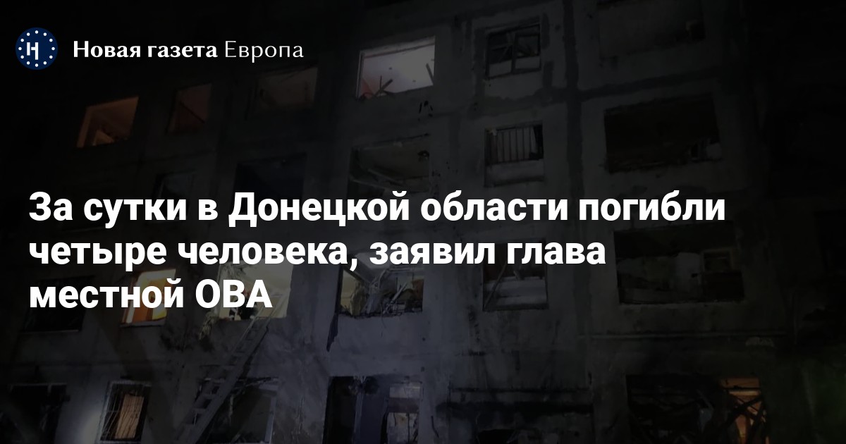Четыре человека погибли в Донецкой области за прошедшие сутки, заявил глава Донецкой областной военной администрации Павел Кириленко.
