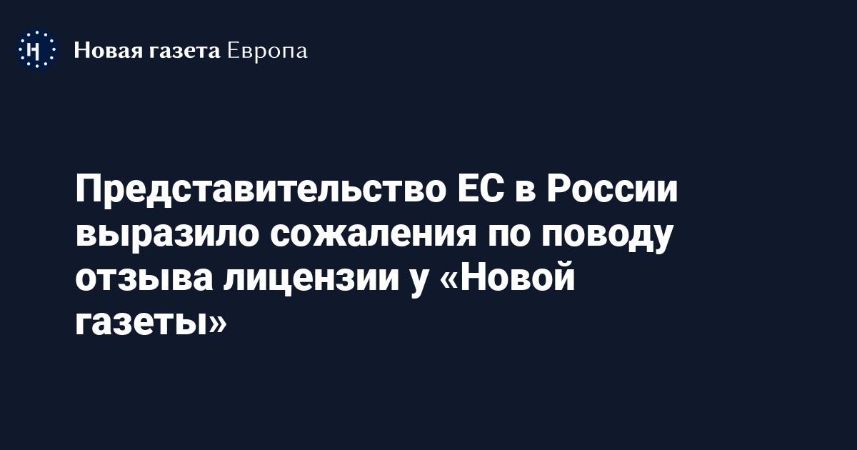 «ЕС сожалеет о решении Московского суда полностью отозвать лицензию у "Новой газеты". <…> ЕС высоко оценивает работу независимых СМИ, которые отвергают авторитаризм и войну», — говорится в публикации.