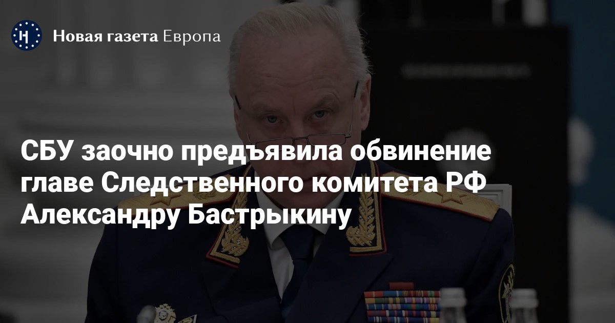 Служба безопасности Украины (СБУ) заочно предъявила обвинения главе Следственного комитета РФ Александру Бастрыкину по двум статьям. Об этом сообщается на сайте украинского ведомства.