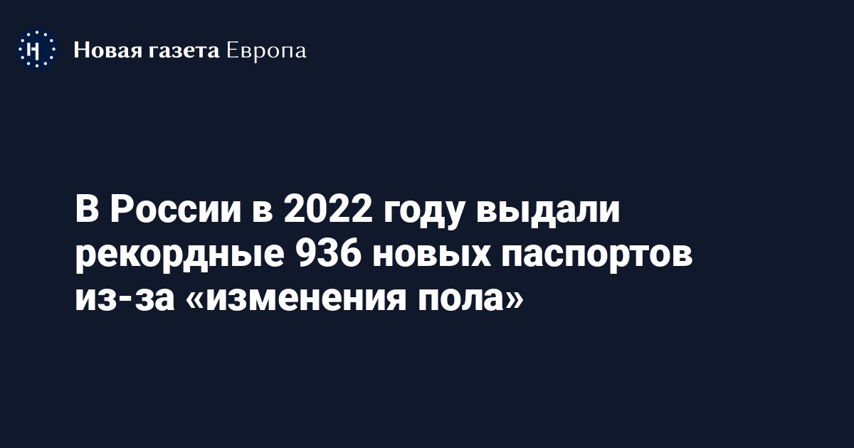 «В 2020 году в связи с «изменением пола» выдали 428 паспортов, в 2021-м — 554 паспорта, а за 2022-й было выдано уже 936 документов», — подсчитали журналисты.
