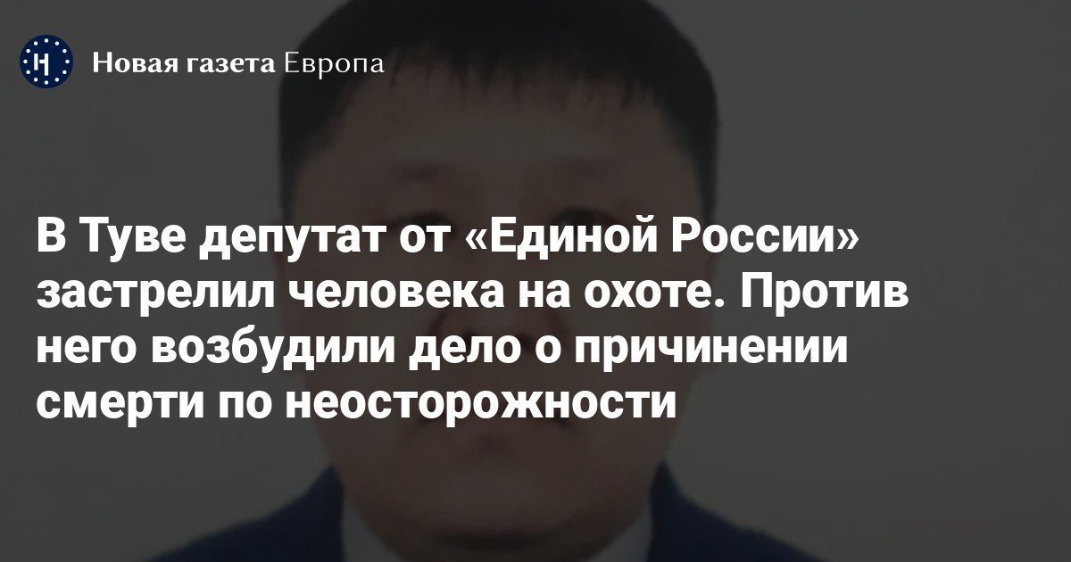 В Республике Тыва Следственный комитет возбудил уголовное дело против депутата Верховного Хурала от «Единой России» Эчис-Балдира Нурзата по делу о причинении смерти по неосторожности на охоте (ч. 1 ст. 109 УК). Об этом со ссылкой на источники сообщают RTVI и «Коммерсант-Сибирь».
