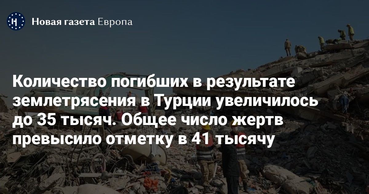 В Турции в результате землетрясения погибли как минимум 35 418 человек. Об этом заявил президент страны Реджеп Тайип Эрдоган.