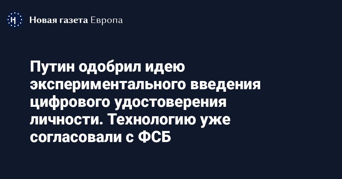 Президент Владимир Путин одобрил идею главы Минцифры Максута Шадаева ввести цифровое удостоверение личности в качестве эксперимента. Об этом сообщает «Интерфакс».