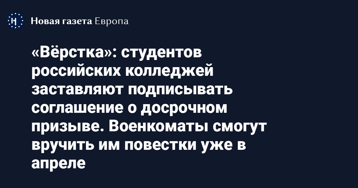 В России военкоматы в сотрудничестве с администрацией колледжей заставляют некоторых студентов подписывать согласия на досрочный призыв. Об этом сообщает «Вёрстка» со ссылкой на «Школу призывника».