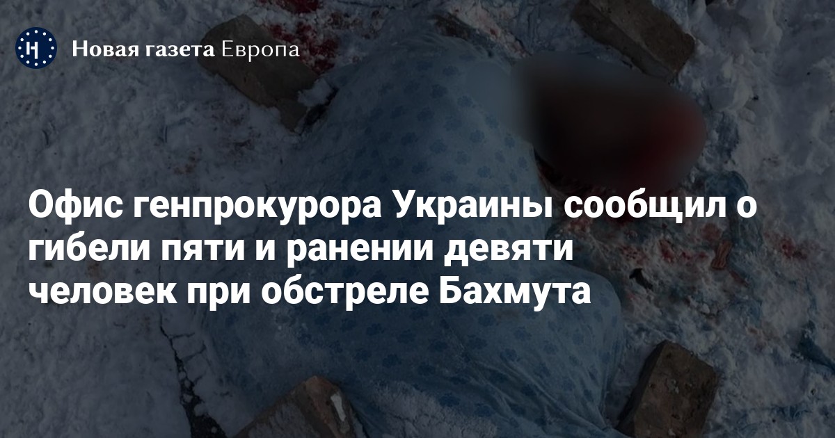 В результате обстрела Бахмута в Донецкой области пять человек погибли, девять мирных жителей пострадали. Об этом сообщил Офис генпрокурора Украины.
