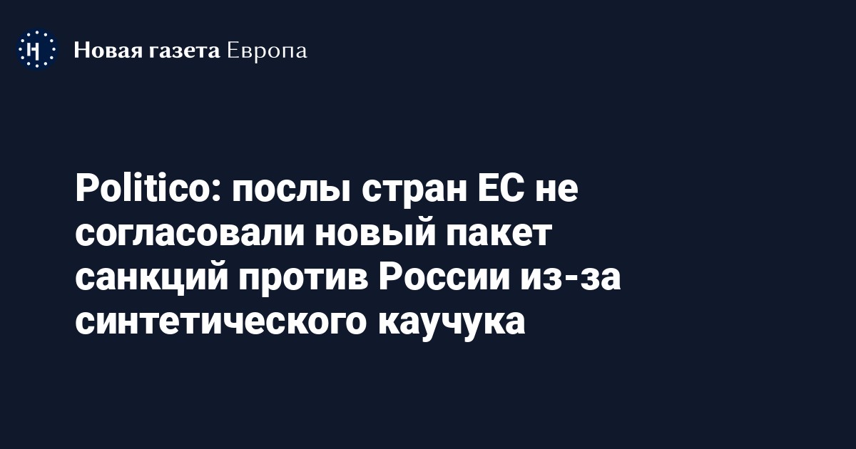 Как отмечает Politico, в 2021 году Россия экспортировала синтетический каучук почти на $2 млрд, $700 млн из них пришлось на ЕС.