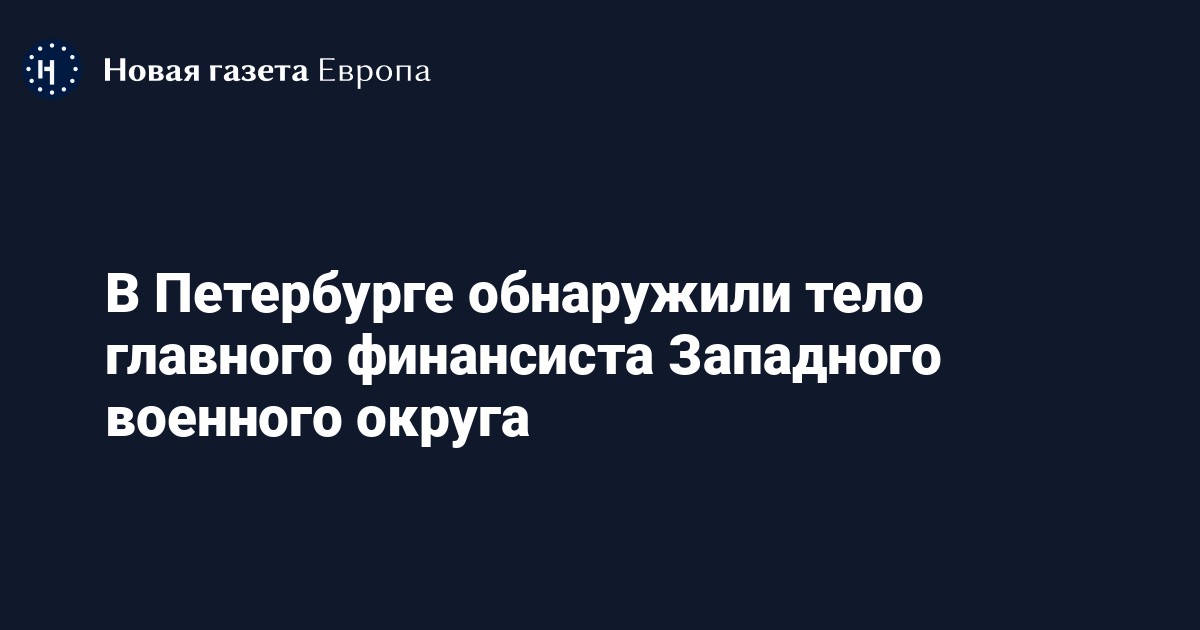 В Петербурге обнаружили тело главного финансиста Западного военного округа