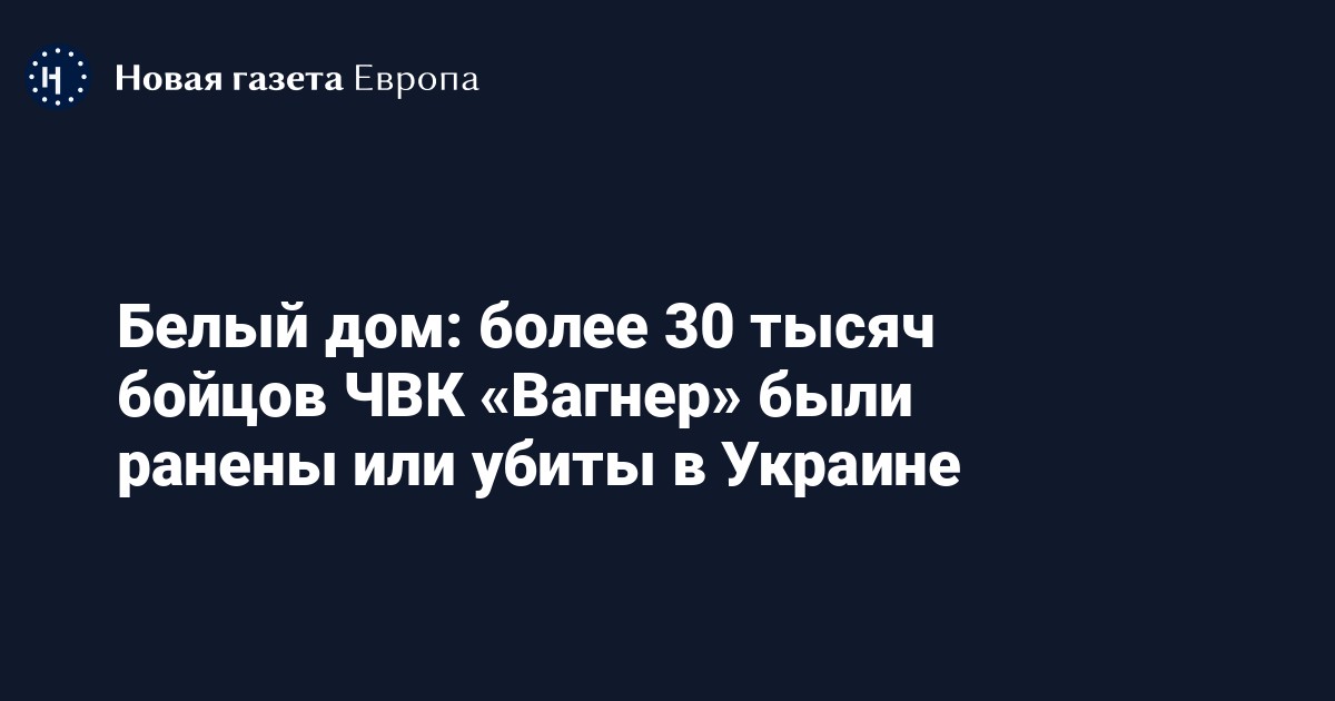 В Украине погибли или получили ранения более 30 тысяч бойцов ЧВК «Вагнер», сообщает CNN со ссылкой на представителя Совета национальной безопасности США Джона Кирби.