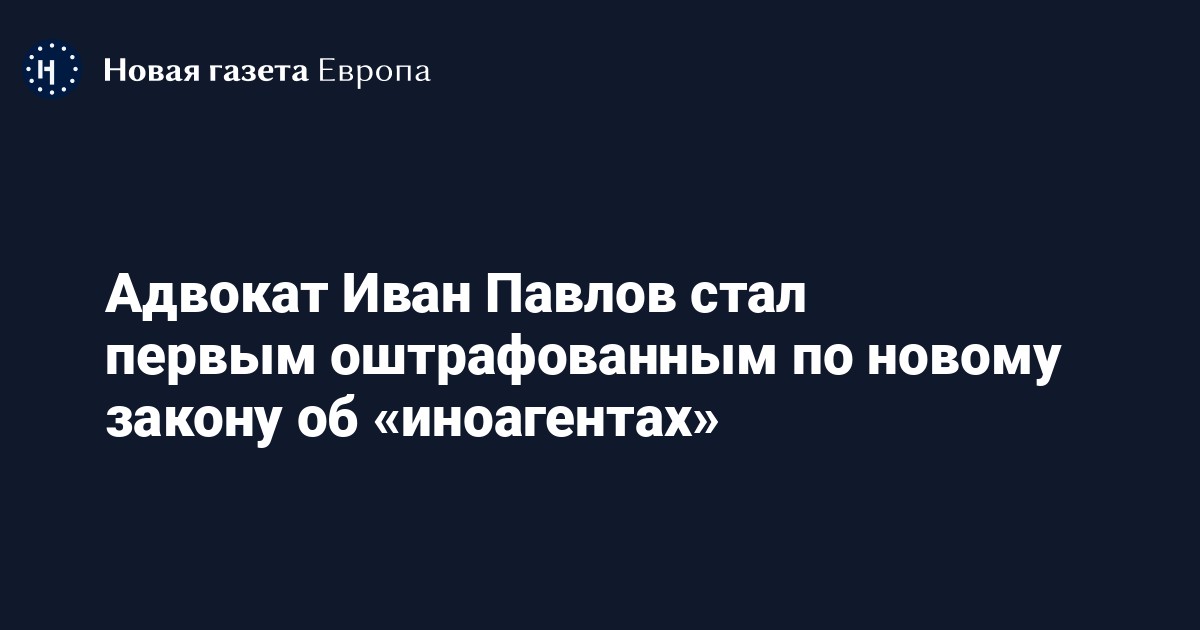 Фрунзенский суд Санкт-Петербурга назначил адвокату Ивану Павлову штраф в размере 30 тысяч рублей за отсутствие маркировки «иноагента» в телеграм-канале (ст. 19.34 КоАП), передает правозащитник Павел Чиков со ссылкой на адвоката Александра Передрука.
