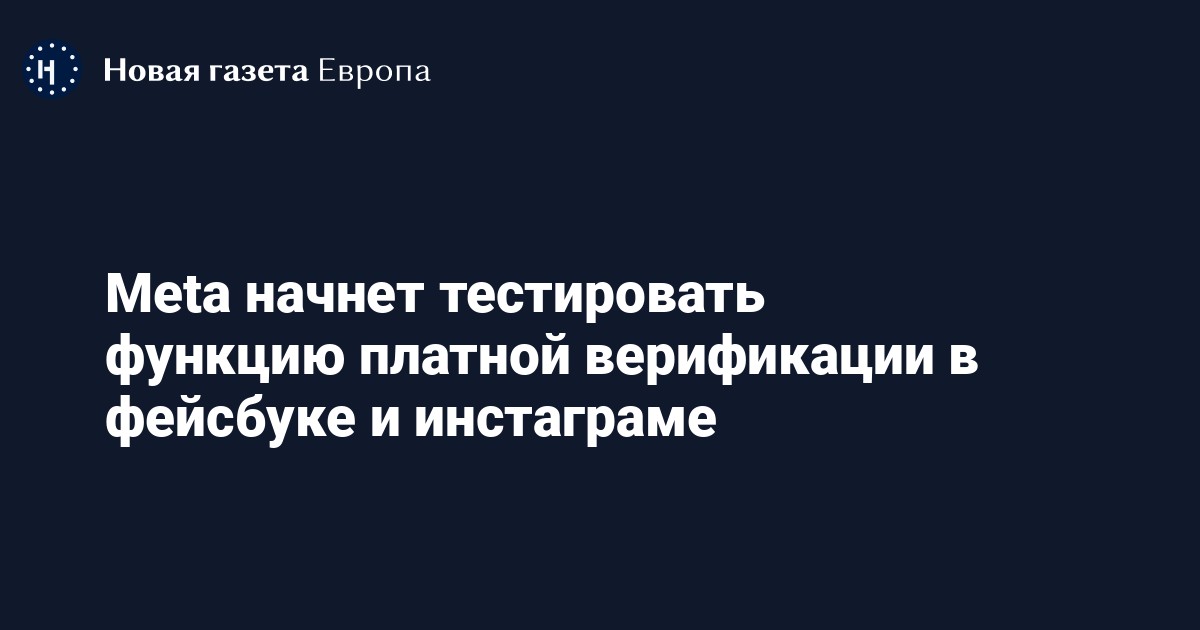 Корпорация Meta начнет тестировать функцию платной верификации в принадлежащих ей соцсетях – фейсбуке и инстаграме. Об этом сообщает The Verge со ссылкой на заявление главы Meta Марка Цукерберга.