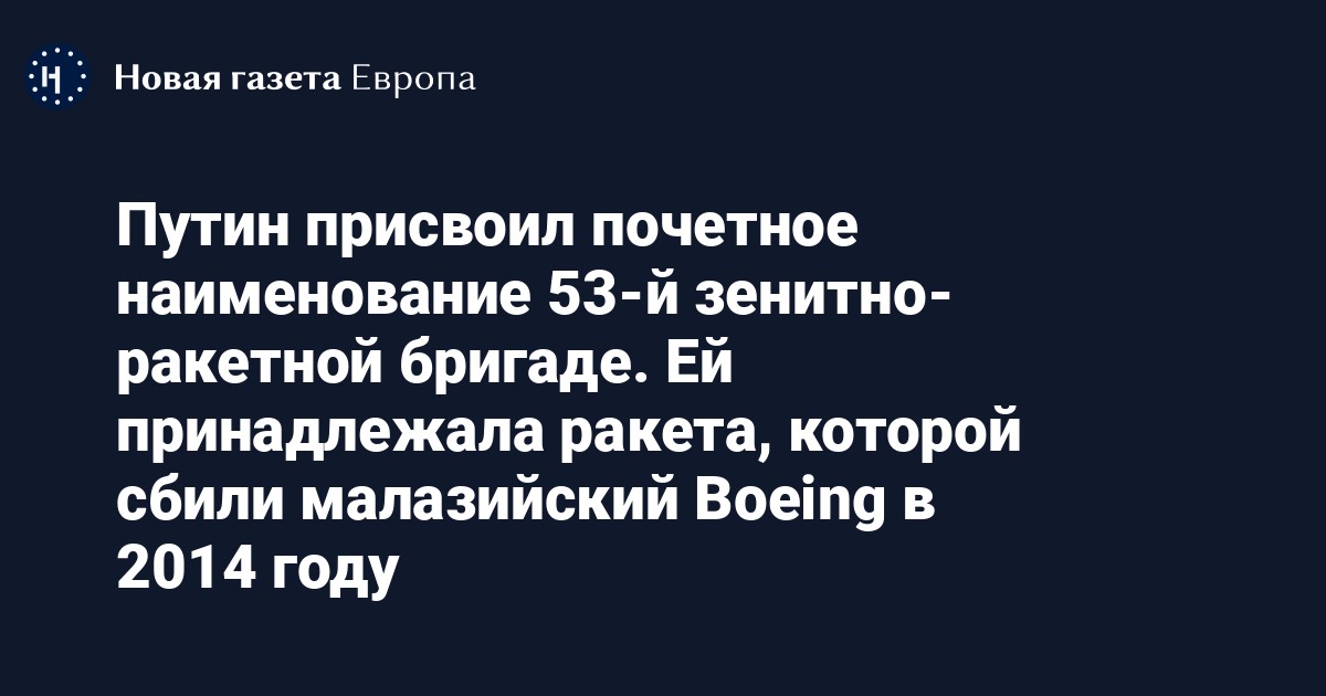 Ранее объединенная следственная группа (JIT) по делу сбитого в 2014 году малазийского Boeing заявила, что самолет сбили ракетой «Бук», запущенной с территории «ДНР». Ракета принадлежала 53-й зенитно-ракетной бригаде. При этом приказ о запуске ракеты мог отдать лично Путин, заявили расследователи. Однако имеющихся доказательств причастности Путина недостаточно для возбуждения уголовного дела, уточнили представители группы.