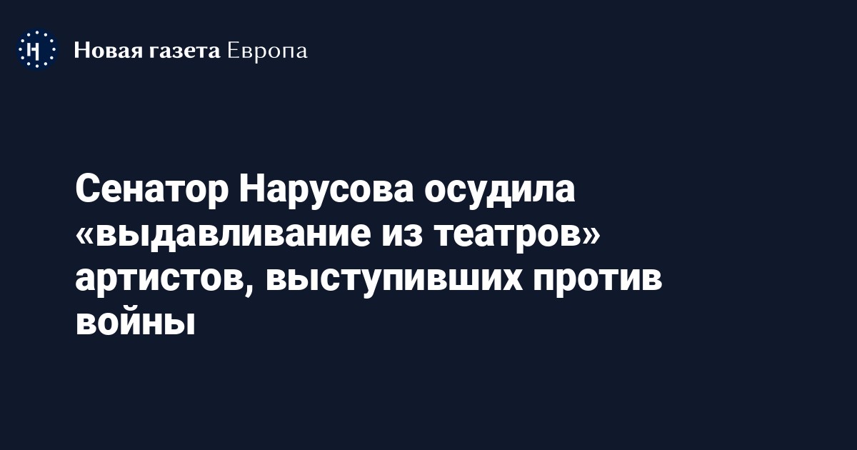 Сенатор Людмила Нарусова осудила «выдавливание из театров» известных деятелей культуры из-за их позиции в отношении войны в Украине. Об этом пишет РБК.