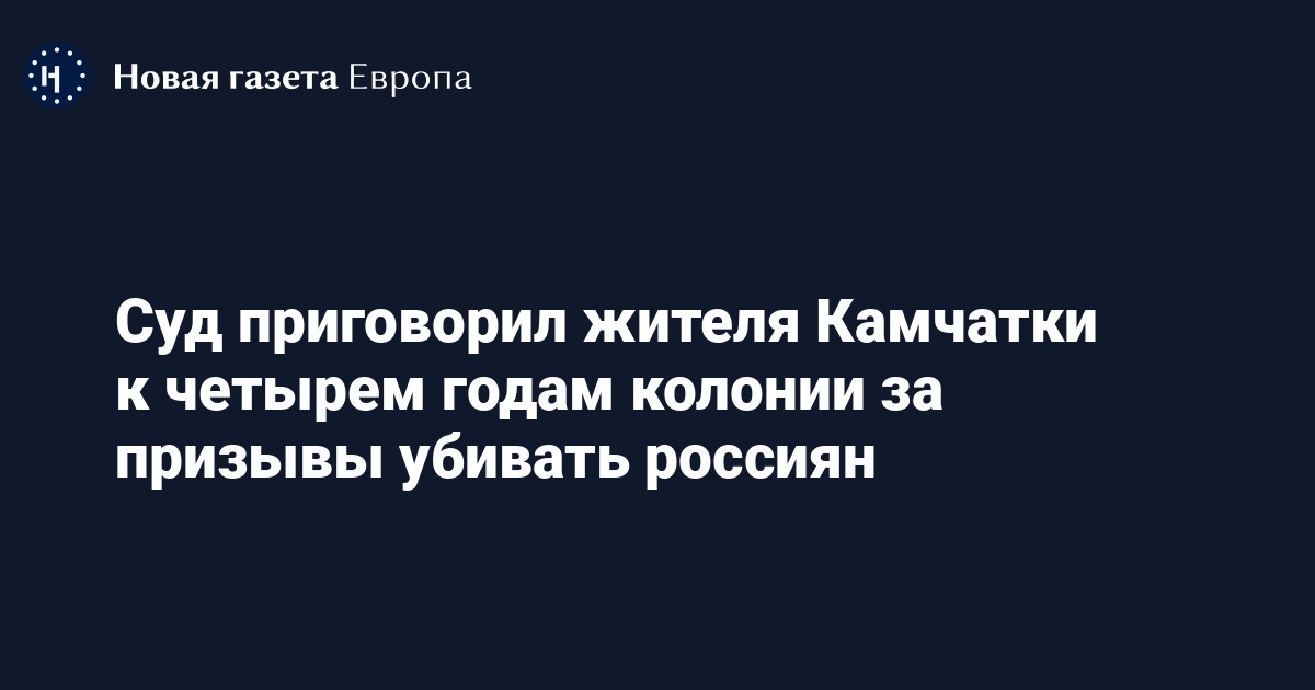 Суд приговорил жителя Петропавловска-Камчатского к четырем годам годам колонии общего режима по делу о публичных призывах в интернете к террористической и экстремистской деятельности (ч. 2 ст. 205.2, ч. 2 ст. 280 УК). Об этом сообщает «Интерфакс» со ссылкой на ФСБ.