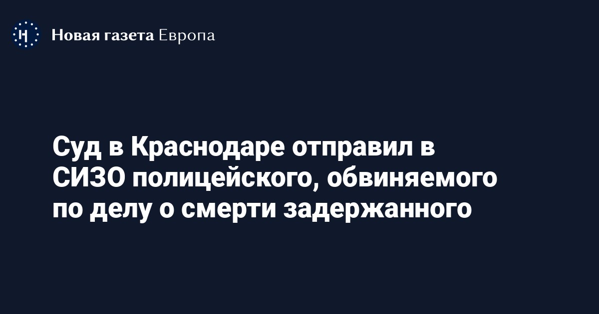 Суд в Краснодаре отправил в СИЗО полицейского, обвиняемого по делу о смерти задержанного