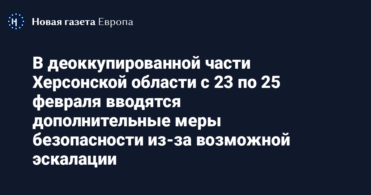На деоккупированной территории Херсонской области с 23 по 25 февраля вводятся дополнительные меры безопасности в связи с возможной эскалацией военных действий. Об этом сообщает областная администрация.