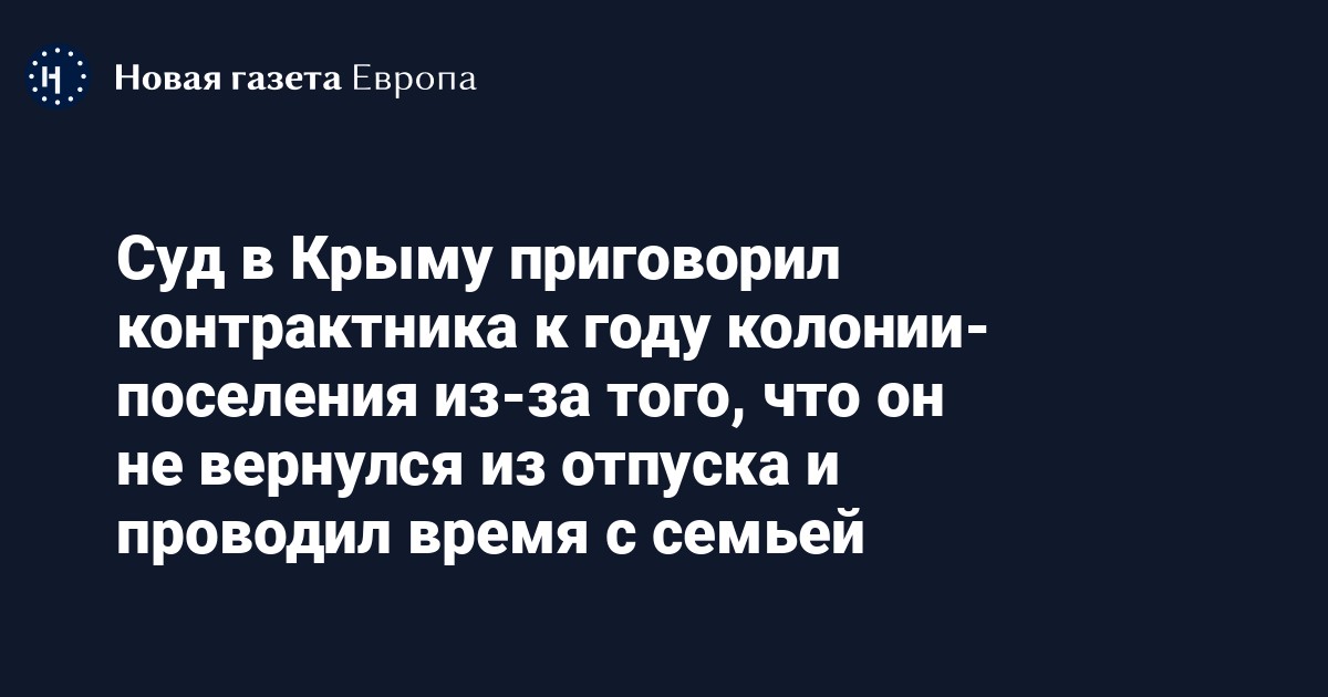 Крымский гарнизонный военный суд приговорил контрактника к году лишения свободы в колонии-поселении за неявку на службу из отпуска. Об этом сообщает пресс-служба суда.