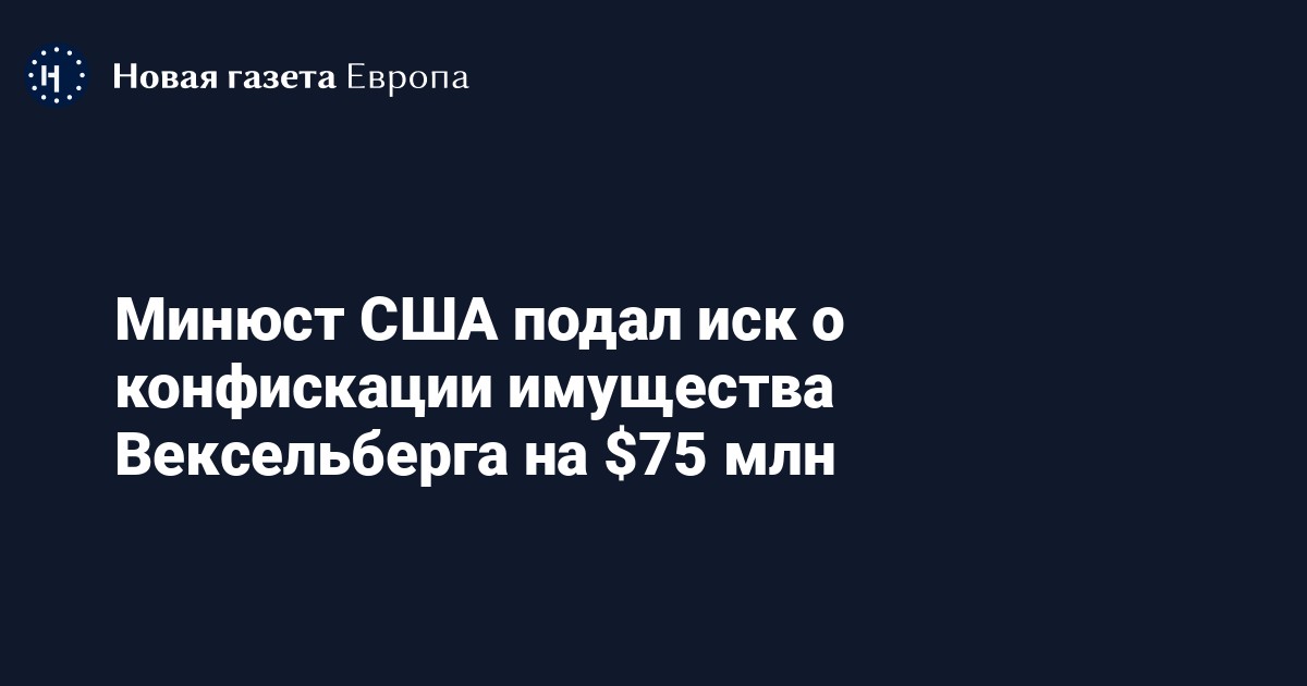 Министерство юстиции США подало иск о конфискации имущества российского бизнесмена Виктора Вексельберга общей стоимостью в $75 млн. Об этом сообщается в пресс-релизе ведомства.