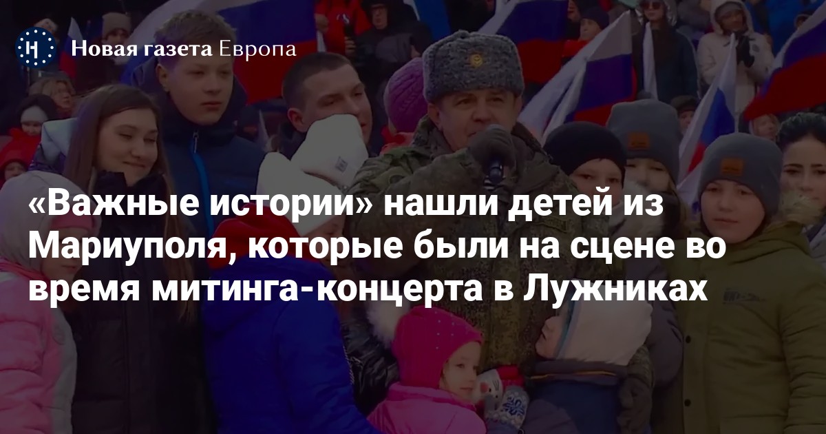 «Важные истории» нашли детей из Мариуполя, которые были на сцене во время митинга-концерта в Лужниках 22 февраля. Об этом сообщается на сайте издания.