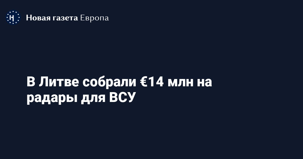 В Литве собрали 14 миллионов евро на многофункциональные тактические радары для Вооруженных сил Украины. Об этом сообщил литовский телеведущий Андрюс Тапинас в твиттере.
