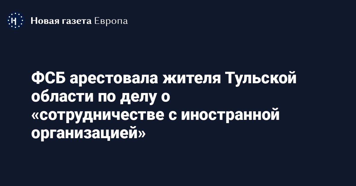 ФСБ возбудила уголовное дело против жителя Тульской области за «содействие иностранной организации в ее деятельности, направленной против безопасности России». Об этом сообщает ТАСС со ссылкой на пресс-службу регионального управления ФСБ.