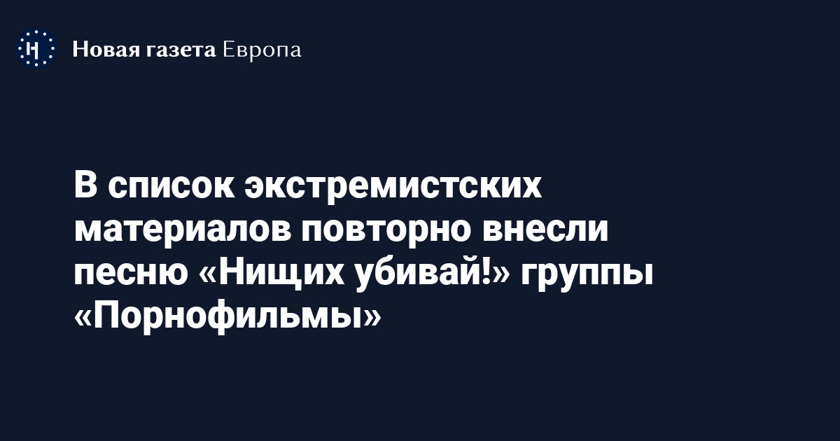 Минюст снова внес в федеральный список экстремистских материалов песню группы «Порнофильмы» «Нищих Убивай!». Внимание на это обратил проект «Сетевые Свободы».