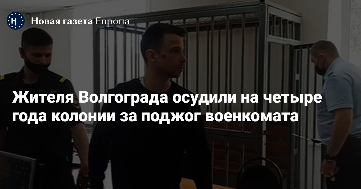 Советский районный суд Волгограда приговорил жителя области Дениса Сердюка к четырем годам колонии за поджог военкомата. Об этом сообщает «Кавказский узел».