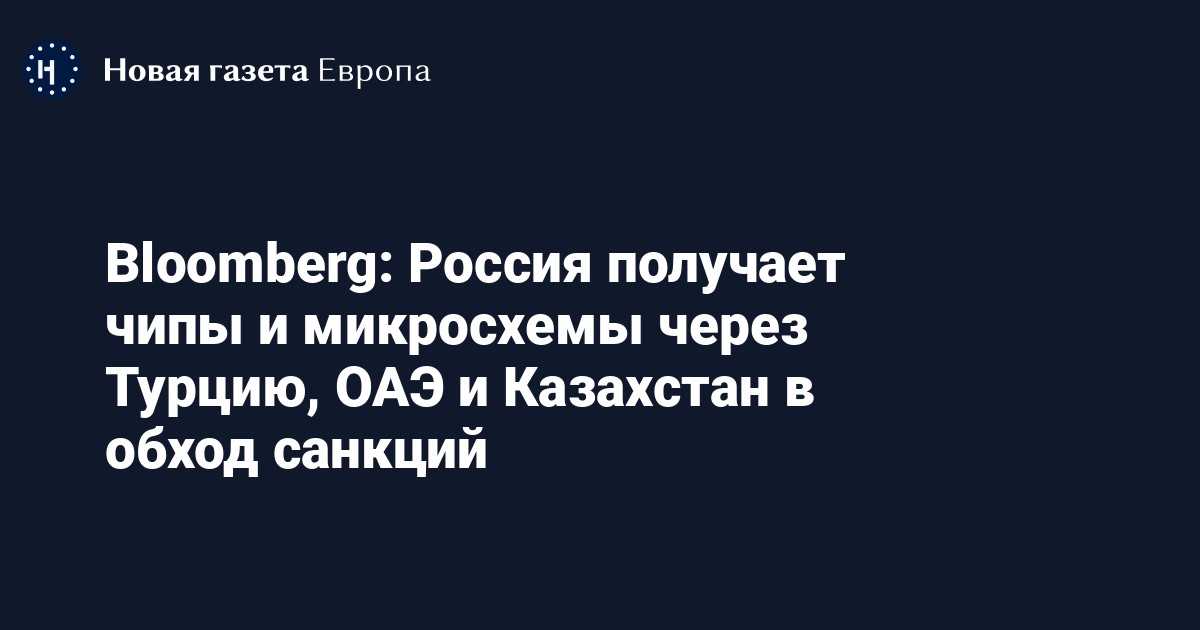 Россия получает чипы и микросхемы через Турцию, Объединенные Арабские Эмираты и Казахстан в обход санкций, наложенных странами Евросоюза и «Большой семерки», сообщает Bloomberg со ссылкой на неназванных высокопоставленных европейских чиновников.