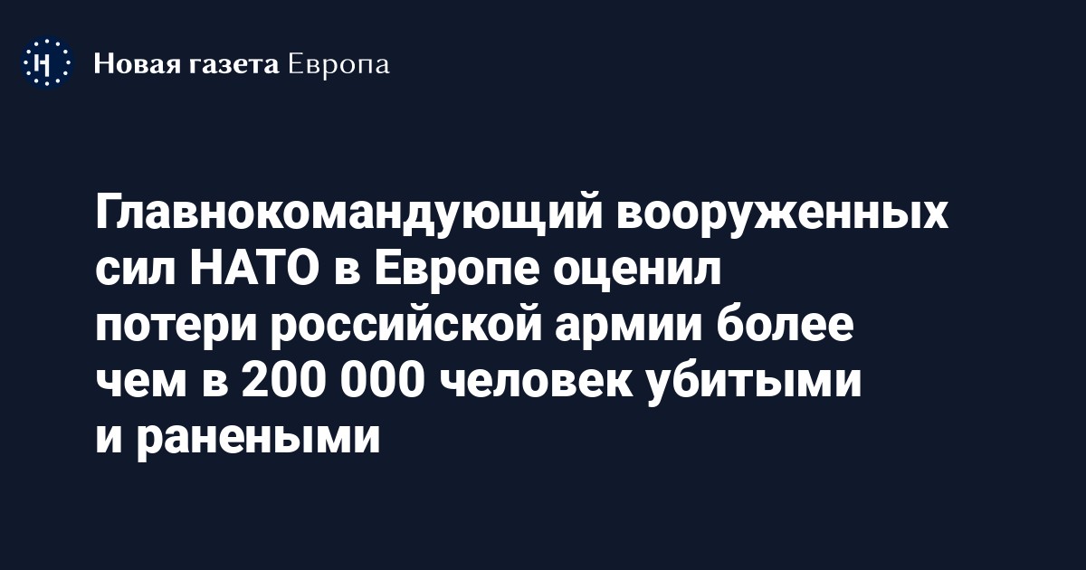 Кристофер Каволи, верховный главнокомандующий Объединенных вооруженных сил НАТО в Европе, заявил, что Россия потеряла на войне в Украине больше 200 тысяч солдат убитыми и ранеными. Его слова передает Der Spiegel.