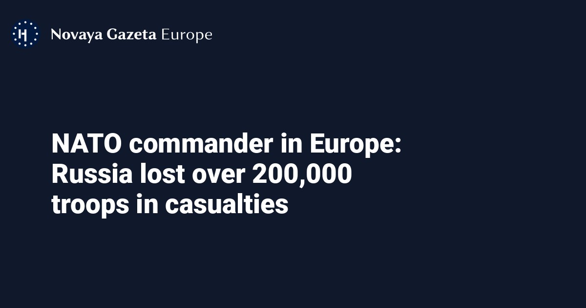 Christopher Cavoli, the NATO Supreme Allied Commander Europe, has stated that Russia’s casualties (KIA and wounded) in Ukraine stand at over 200,000 troops, as per Der Spiegel.